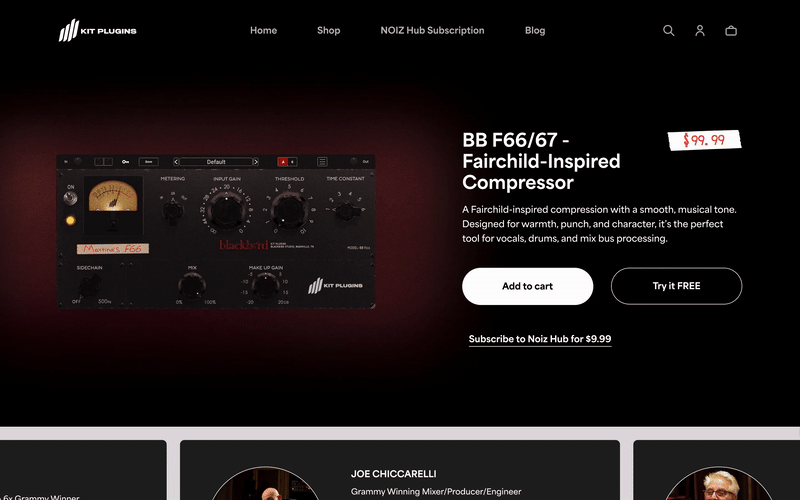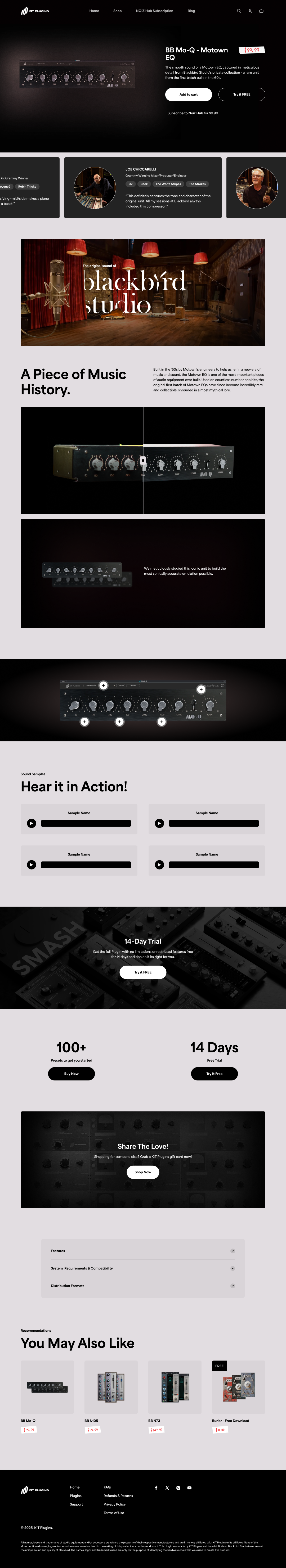 KIT Plugins’ website didn’t match the Blackbird Collection aesthetic. The bright, childlike visuals clashed with the vintage, premium vibe of the product line. A redesign was needed to create a more classy, timeless look that aligned with the collection.